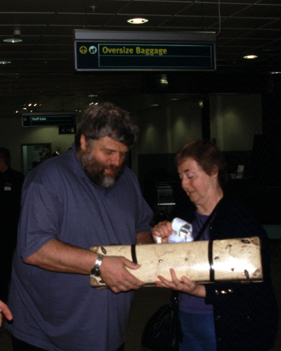 | Friday 12th April 2002. Birmingham Airport Spot the Oversize Baggage: Chris Hughes and Cindy Irons