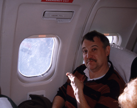 | Friday 12th April 2002. Flight AF4828, Paris to Rome Peace at Last! Finally, Keith Murphy has a window seat, and a door, so stops whinging