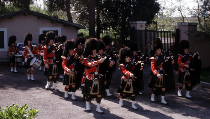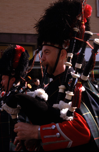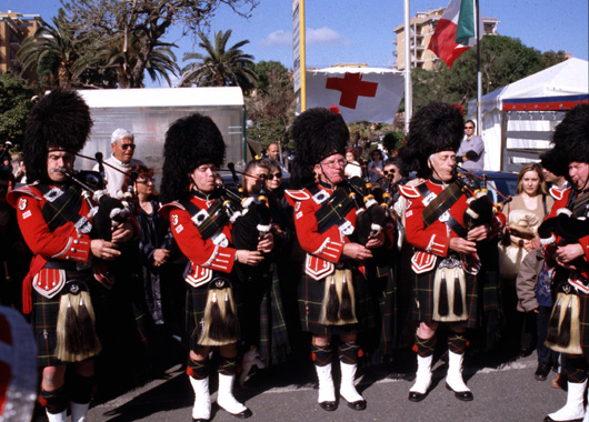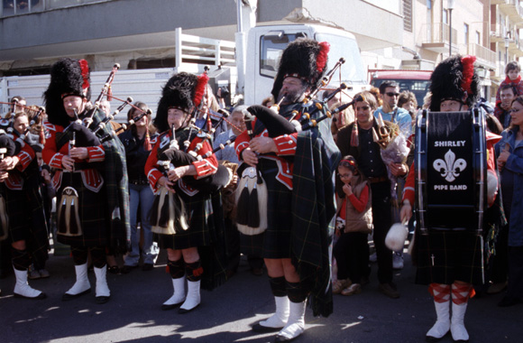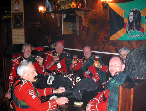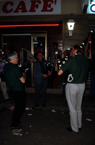 | Sunday 14th April 2002. Playing in the Spitfire American Bar Pushing in front of Phil: John (Pipe Major) Cadman