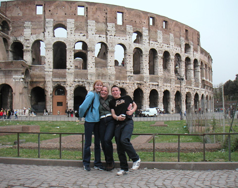 | Saturday 13th April 2002. Colosseum, Rome Jen Mellor, Pascha Rees and Davey Watts