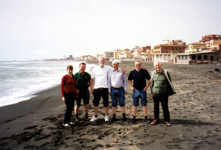 | Saturday 13th April 2002. Ladispoli Beach Marion Doyle, Albert Hope, John Cadman, Keith Murphy, Carl Gray, Denis Carter