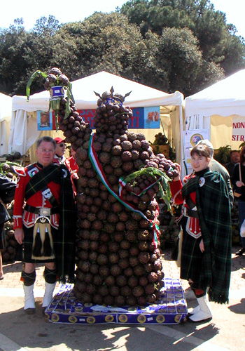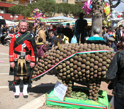 | Sunday 14th April 2002. Al Hope and Artichoke Ladispoli Artichoke Festival Albert Hope posed by Tapir modelled from Artichokes 126Kb