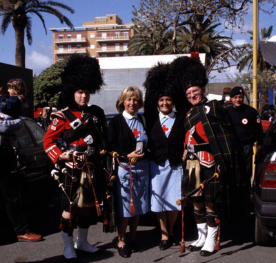 | Sunday 14th April 2002. Ladispoli Centre With Nurses: Davey Watts and Albert Hope (Albert is still waiting to have his knee kissed better) 52Kb
