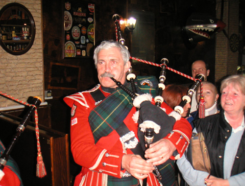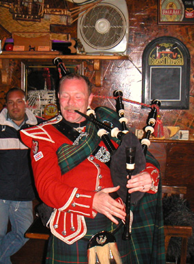 | Sunday 14th April 2002. Playing in the Spitfire American Bar Andy (Pipe Sergeant) King