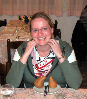 | Sunday 14th April 2002. Pascha's Pear Posed with her nice pear: Pascha Rees