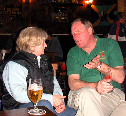 | Saturday 13th April 2002. Spitfire Bar, Ladispoli Sitting in the American Bar: Tom Taverner, Dave Mellor, James Cadman, Denis Carter, John Cadman, Allan Baxter, Super-Efficient Barmaid, John McGee, Davey Watts, Pascha Rees, Jen Mellor 139Kb