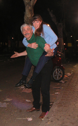 | Sunday 14th April 2002. Albert, Marion and Aunty Choke? Ladispoli Artichoke Festival Albert Hope and Marion Doyle posed by Statue of Liberty modelled from Artichokes 117Kb