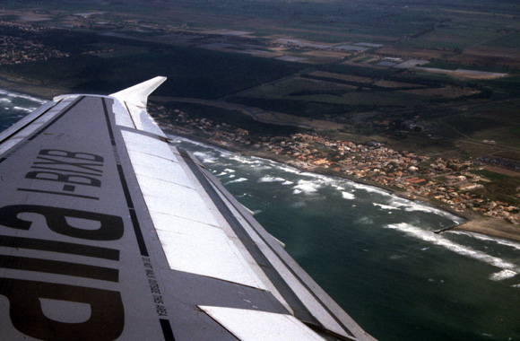 | Monday 15th April 2002. Flight AF4827, Rome to Paris View along coast after take-off from Fiumicino Airport