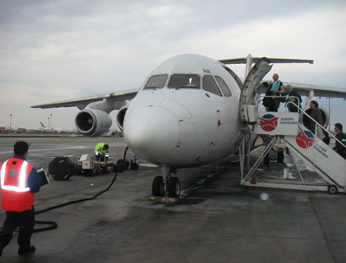 | Monday 15th April 2002. Flight AF3008, Paris to Birmingham Boarding at Charles de Gaulle Airport: Notice the instruments waiting on the tarmac, but no suitcases!