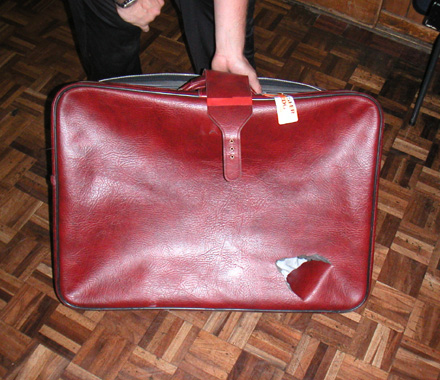 | Tuesday 16th April 2002. Case after Careful Handling and Delivery Phil's case, one of several to be damaged