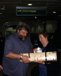 | Sunday 14th April 2002. World Records Explaining how he achieved the World Record for non-stop Scotland the Brave: Allan Baxter with Janis Davidson who became our unofficial interpreter (thanks Janis) 84Kb