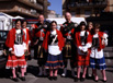 | Sunday 14th April 2002. Ladisploi Arichoke Festival, Italy Nearing the Main Square John Cadman (turning), Denis Carter, Marion Doyle, Cindy Irons, Dave Mellor, Andy King 73Kb