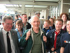 | Monday 15th April 2002. Denis at Charles de Gaulle Airport, Paris This time he won't escape: Albert Hope, Marion Doyle, Phil Taverner, Denis Carter, Chris Hughes, Tom Taverner, Cindy Irons, James Cadman, Jo Mellor, Davey Watts