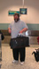 | Friday 12th April 2002. Flight AF3007, Birmingham to Paris Birmingham Airport: Carl Gray demonstrating how to smuggle his feather bonnet on board as hand luggage 92Kb